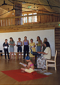 Summer 2002 June 8 - 9 Kundalini Yoga Weekend Intensive with Marika Blossfeldt (New York/Estonia) June 26 - 27 Reiki I Seminar for parents and children (ages 10 - 12) with Aime Andra (New York), Svea Sööt and Urmas Loige (Estonia) June 29 - 30 Reiki I Seminar for parents and children (ages 13 - 15) with Aime Andra (New York), Svea Sööt and Urmas Loige (Estonia) July 2 - 3 Reiki II Seminar with Aime Andra (New York) July 13 - 14 Kundalini Yoga Weekend Intensive with Marika Blossfeldt (New York/Estonia) July 30 Exhibition by painter Constance Kilgore (USA) Aug. 3 Two New Dance Solos by choreographer Gregor Kamnikar (Slovenia) and gestalt therapist Roman Kostal (Slovenia) Aug. 4 - 5 INTUITIVE BODY, Movement Workshop by choreographer Gregor Kamnikar (Slovenia) and gestalt therapist Roman Kostal (Slovenia) Aug. 7 - 11 English/Art Camp for local school children with Bonnie Sue Stein and Valery Daniels (New York), (supported in part by Hanila township government) Aug. 17 - 18 Kundalini Yoga Weekend Intensive with Marika Blossfeldt (New York/Estonia) Aug. 15 Exhibition by painter Patrick Kikut (USA) Sept. 14 Video/Performance Festival: Final presentations by participants of the Video/Performance Workshop with video artists Ernest Gusella, Tomiyo Sasaki and director/performer Kyle DeCamp (New York). Workshop participants came from 11 different countries: Suela Bako (Albania), Mariy Rosen Grigorov (Bulgaria), Jelena Mihelcic (Croatia), Gabor Pinter (Hungary), Konstantin Timoshenko (Kazakhstan), Miliana Dodevska (Macedonia), Lhagvasuren Otgonnyam (Mongolia), Ana Catalina Gubandru (Romania), Nenad Andric (Serbia), Lobanov Jurij Nikolaevich (Udmurtiya/Russia), Eike Ülevain (Estonia), Merle Saarva (Estonia). (Supported by The Trust for Mutual Understanding and the Culture Link program of the Center for Contemporary Arts, Estonia.) Sept. 28 - 29 Kundalini Yoga Weekend Intensive with Marika Blossfeldt (New York/Estonia) Okt. 4 - 6 Kundalini Yoga Weekend Intensive in Viljandi with Marika Blossfeldt (New York/Estonia) Okt. 12 - 13 Kundalini Yoga Weekend Intensive in Tallinn with Marika Blossfeldt (New York/Estonia)